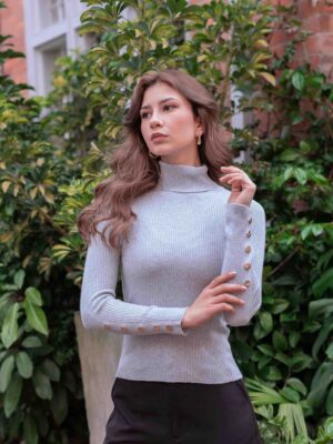 BUZO CUELLO ALTO APLIQUE – Marfil