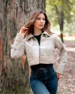 CHAQUETA CUERINA BORREGO- Nude Claro
